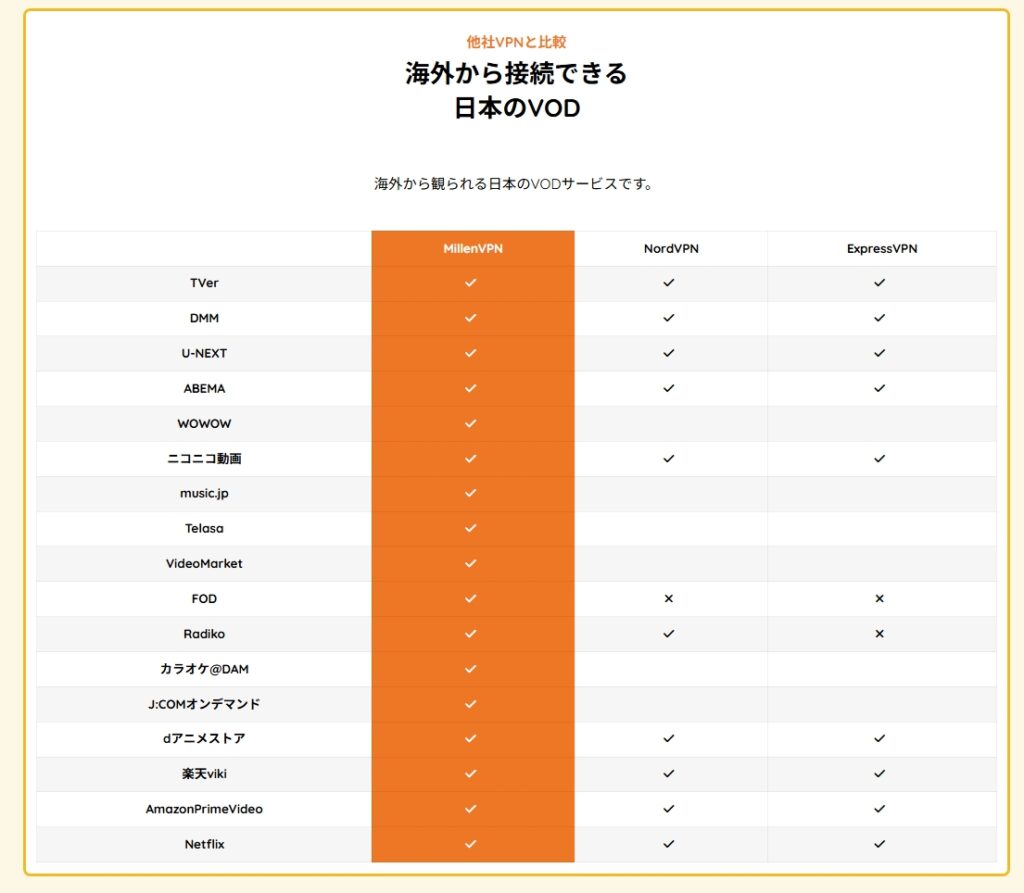 一度MillenVPNのサイトを見てみてください。ほとんどすべてのサービスが利用可能になっています。