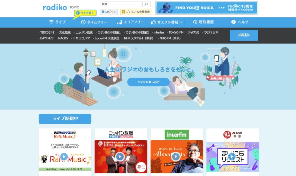 日本でおなじみのラジオサービスです。簡単にradikoの解説をしておきますね。